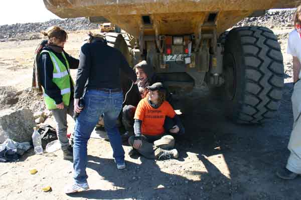This summer’s actions and events were successful. Saturday, July 19th, we stopped construction in Helguvík for a whole day. Norðurál/Century Aluminum has started construction for an aluminium smelter, without all the permits needed. Two days later we blocked the road to Century’s already existing smelter and Elkem’s iron blending factory in Grundartangi. Both times we pointed out the unique geothermal areas which have to be destroyed because of energy production, Century’s corrupted business deals in D.R. Congo, and in Jamaica where the company has it’s bauxite mines. Photos and press release from July 19th can be seen here and from July 21st here.