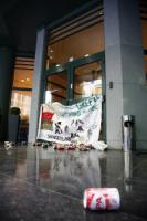 Látið Þjórsá í friði! – Saving Iceland reisir stíflu við skrifstofur Landsvirkjunar